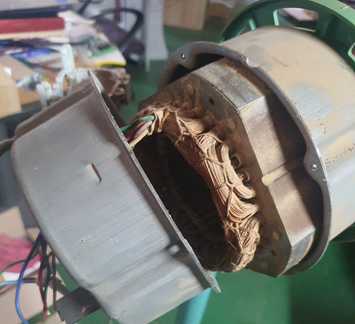 안의 로터를 뽑아내고 난 스테이터의 모습입니다. 코일과 코어가 있습니다.
